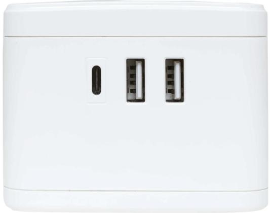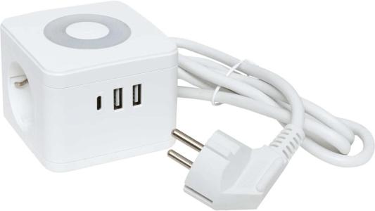 EKF Удлинитель "Куб" 2 гнезда 2USB 2,4А+Type C + Ночник 1,3 метра 1мм2 UBA-CUB-2-TC