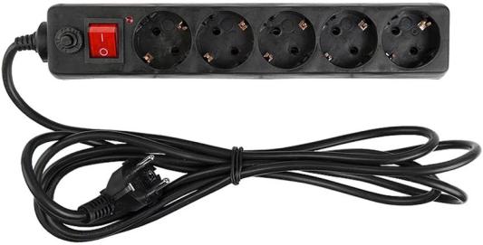 General Lighting Systems Фильтр сетевой 5 розеток, с заземлением и выключателем, 10 метров, 16А, Черный GPS-5-16-3x1-1000-B 471009