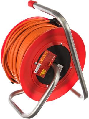 Удлинитель силовой на катушке LUX К4-Е-50 ПВС 3x0.75 50м, 10А, 4 встр. розетки с з/к