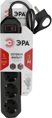 ЭРА Сетевой фильтр USF-5es-3m-B черный с заземл, 3x0,75мм2, с выкл, 5гн, 3м Б0019034