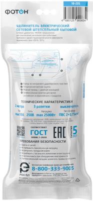 ФОТОН Удлинитель сетевой 10-23S изготавливается высококачественными компонентами и соответствует стандартам безопасности IP20. Он оснащен трехрозеточной электрической разветвитой розеткой, что позволяет подключать несколько устройств одновременно.