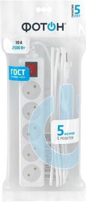 ФОТОН Удлинитель сетевой 10-55S, 5м, 5 розеток, 10А, с выключателем, Белый 21206