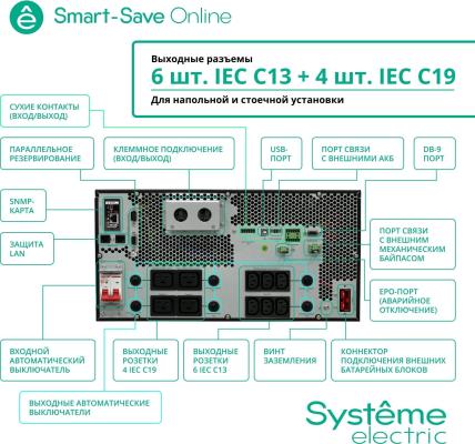 Источник бесперебойного питания Systeme Electriс SRT SRTSE5KRTXLIEC-NC 5000Вт 5000ВА черный
