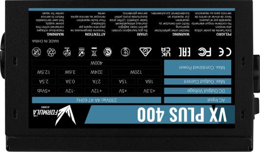 Блок питания Formula ATX 400W AC VX PLUS - совершенный выбор для любого компьютера. Высокая мощность 400 Вт гарантирует стабильную работу даже при высокой загрузке системы.