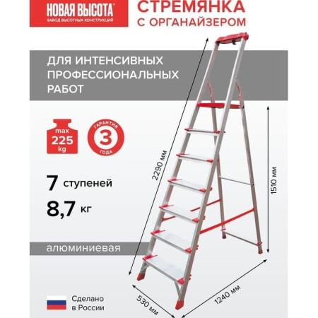 Новая Высота Стремянка профессиональная NV3118, 1x7 ступеней 130 мм, органайзер 3118107