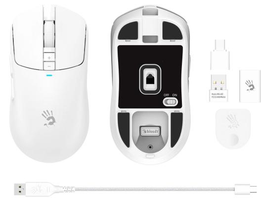 Мышь A4Tech Bloody R72 Ultra белый оптическая 20000dpi беспров. USB-C 7but