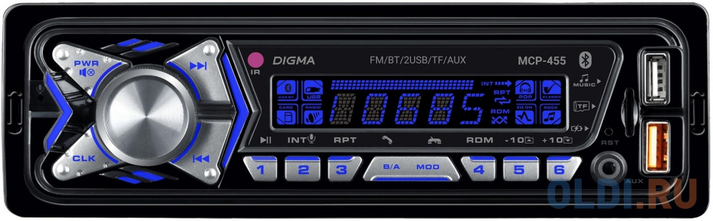 Автомагнитола Digma MCP-455 1DIN 4x50Вт v5.0 USB 2.0 AUX 4 ПДУ![]()