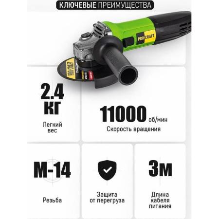 PROCRAFT Углошлифовальная машина болгарка УШМ сетевая 125 мм PW1100