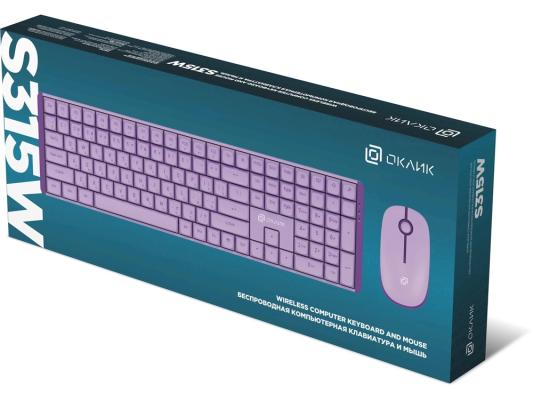 Комплект (клавиатура+мышь) Oklick S315W, USB, беспроводной, сиреневый [1978643]