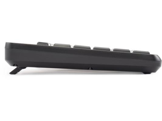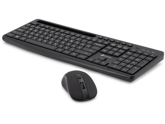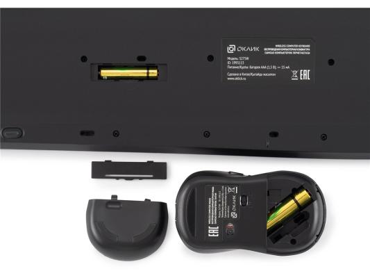 Комплект оснащен радиоканалом, что обеспечивает беспроводную связь на расстоянии до 10 метров. Для питания используется две батарейки AAA для клавиатуры и одна батарейка AA для мыши, при этом гарантийный срок составляет 12 месяцев.