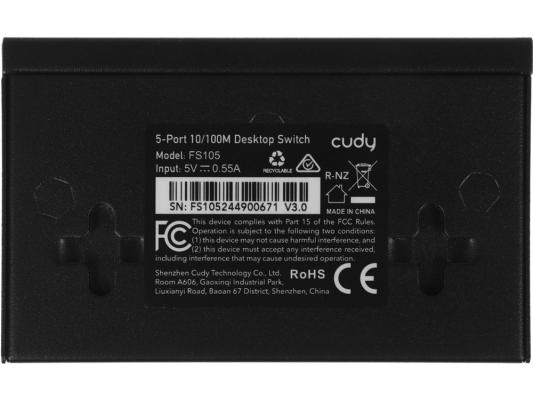 Коммутатор неуправляемый Cudy FS105, 5 портов RJ45 10/100 Мбит/с, металлический корпус