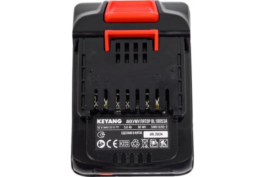 ОписаниеАккумулятор KEYANG BL18053A имеет напряжение 18 В (max.20 В) и ёмкость 5.0 А*ч. Служит как источник питания для аккумуляторного инструмента KEYANG.