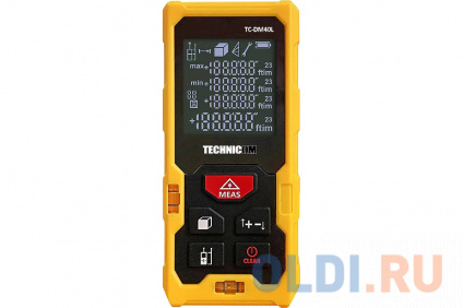 Прочие особенностиЛазерный дальномер TC-DM40L – небольшой, удобный, точный прибор для проведения измерений на расстоянии 40 метров. Все измерения можно проводить в метрах, футах или дюймах. Отличительными чертами данного дальномера являются: скорость проведения измерений 0,25с, информативный четырехстрочный дисплей, два пузырьковых уровня, отверстие под штатив ?”, степень влагозащиты IP54. Данный прибор имеет 2 точки отсчёта и функцию измерения углов. C помощью лазерного дальномера TC-DM40L можно выполнять все основные типы измерений: расстояние до объекта, длина, ширина, высота, вычисление площади и объема, специфические измерения, такие как функция Пифагора.