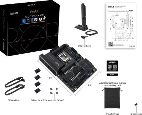 Материнская плата Asus PROART Z890-CREATOR WIFI Soc-1851 Intel Z890 4xDDR5 ATX AC`97 8ch(7.1) 1 x 10Gigabit + 1 x 2.5Gigabit RAID+HDMI+DP