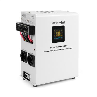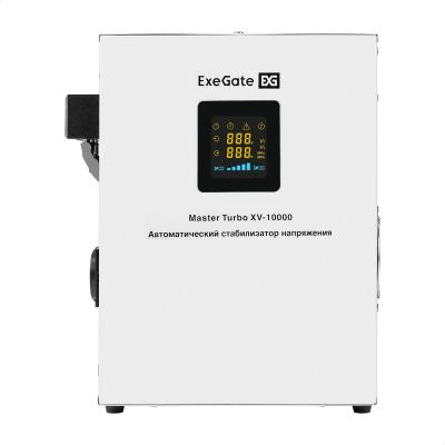 Стабилизатор напряжения настенный ExeGate Master Turbo XV-10000 (10000ВА, вход 80-265В, цветной дисплей, выход 220В±8%, КПД 98%, 5 уровней защиты, задержка, усиленный метал.корпус, 2*Schuko+клем.колодка, RTL)
