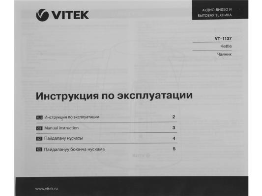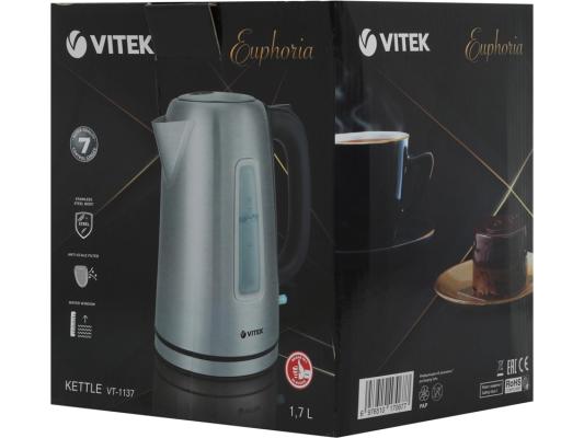 Чайник электрический Vitek VT-1137 1.7л. 2200Вт серебристый матовый корпус: металл