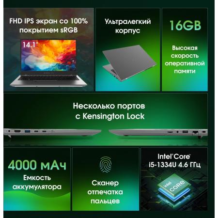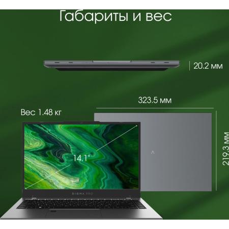 Ноутбук Digma Pro Fortis M Core i5 1334U 16Gb SSD512Gb Intel Iris Xe graphics 14.1" IPS FHD (1920x1080) Windows 11 Pro grey WiFi BT Cam 4000mAh (DN14P5-ADXW04)