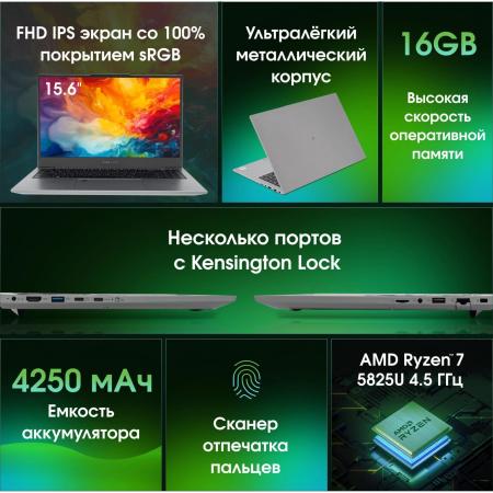 Ноутбук Digma Pro Fortis M Ryzen 7 5825U 16Gb SSD512Gb AMD Radeon Graphics 15.6" IPS FHD (1920x1080) Windows 11 Pro grey WiFi BT Cam 4250mAh (DN15R7-ADXW04)