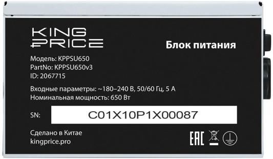 Блок питания KingPrice ATX 650W KPPSU650 (20+4pin) 120mm fan 4xSATA