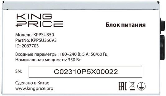 Блок питания KingPrice ATX 350W KPPSU350 (20+4pin) 120mm fan 2xSATA
