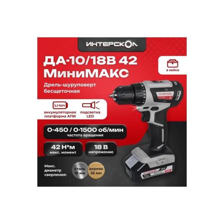 Бесщеточная аккумуляторная дрель-шуруповерт Интерскол ДА-10/18В 42 МиниМАКС
