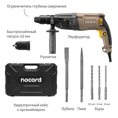 Перфоратор Nocord 900089.NHD-800.30.2-2 - мощный и надежный инструмент для любых работ по сверлению отверстий в бетоне, стали и дереве. Этот перфоратор оснащен горизонтальным двигателем, который обеспечивает стабильную работу при высоких оборотах до 1100 об./мин.