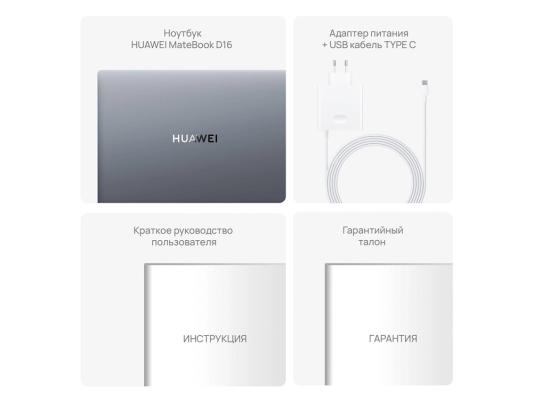 Ноутбук 16" IPS WUXGA HUAWEI MateBook D16 MCLG-X gray (Core i9 13900H/16Gb/1Tb SSD/VGA int/noOS) (53014HYG)