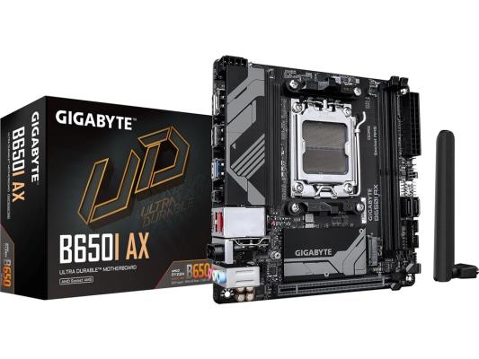 Высокоэффективная материнская плата GIGABYTE B650I AX, разработанная для использования с процессорами AM5, станет идеальной основой для создания мощных и высокопроизводительных компьютеров. Этот мини-итекский вариант оснащен чипсетом AMD B650, который обеспечивает быструю передачу данных и вычислительную мощность.