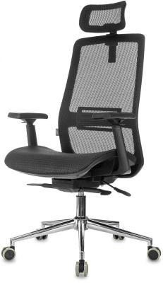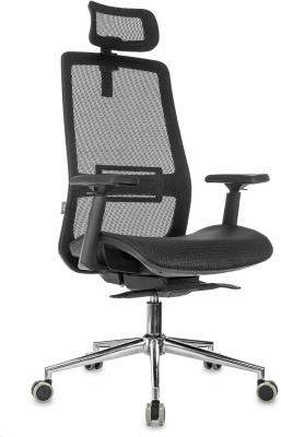 Кресло руководителя Бюрократ MC-912-H черный сетка с подголов. крестов. металл хром