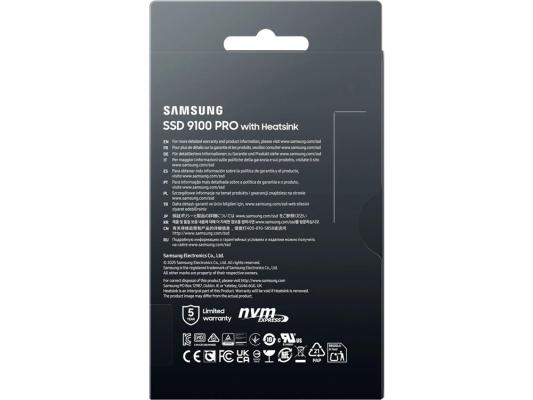Твердотельный диск 2TB Samsung 9100 PRO, M.2, PCI-E 5.0 x4, TLC 3D NAND [R/W - 14800/13400 MB/s] с радиатором