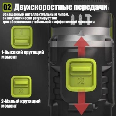 В комплекте приходит литий-ионный аккумулятор с емкостью 2 Ач и напряжением 20 В. Это обеспечивает мощную работу без необходимости постоянной подзарядки, а кроме того, позволяет использовать дрель в любом месте, где есть электричество.