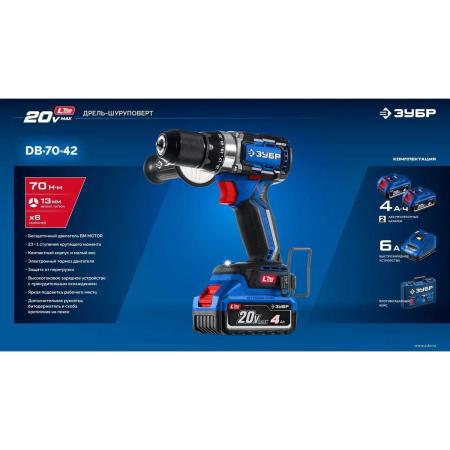 Дрель-шуруповерт Зубр DB-70-42 40Вт аккум. патрон:быстрозажимной (кейс в комплекте)