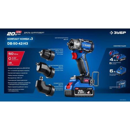 Дрель-шуруповерт Зубр DB-50-42-H3 40Вт аккум. патрон:быстрозажимной (кейс в комплекте)