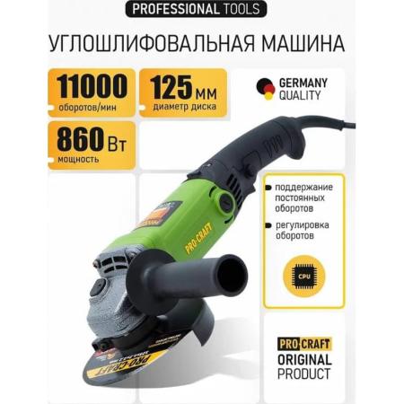 PROCRAFT Углошлифовальная машина 860 Вт, 125мм, 0-11000 об/мин PW1200ES