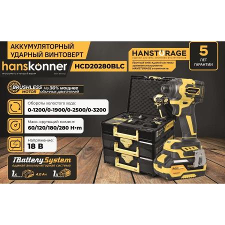 Hanskonner Аккумуляторный ударный винтоверт 1BatterySystem HCD20280BLC