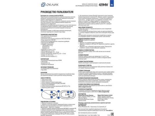 Мышь Оклик 409MW графитовый оптическая 1600dpi silent беспров. BT/Radio USB для ноутбука 4but (2007545)
