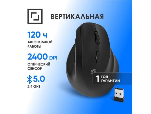 Мышь Оклик 688MW ERGO черный оптическая 2400dpi silent беспров. BT/Radio USB 6but (2070320)