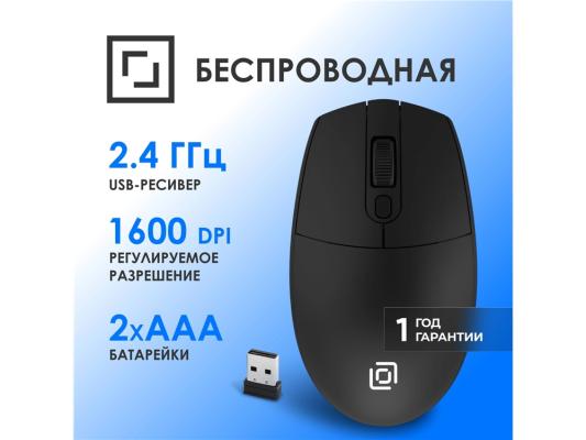 Мышь Оклик 201MW черный оптическая 1600dpi беспров. USB 4but (2070318)