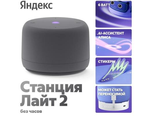 Умная колонка Yandex Станция Лайт 2 без часов Алиса графитовый 6W 1.0 BT/Wi-Fi 10м (YNDX-00028GRY)