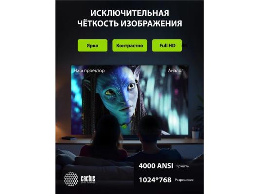 Проектор Cactus Bright CS-V1.B 3LCD 4000Lm ANSI (1024x768) 30000:1 ресурс лампы:10000часов 1xUSB typeA 1xUSB typeB 2xHDMI 4кг