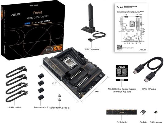 Материнская плата Asus PROART X870E-CREATOR WIFI Socket AM5 AMD X870E 4xDDR5 ATX AC`97 8ch(7.1) 1 x 10Gigabit + 1 x 2.5Gigabit RAID+HDMI+DP