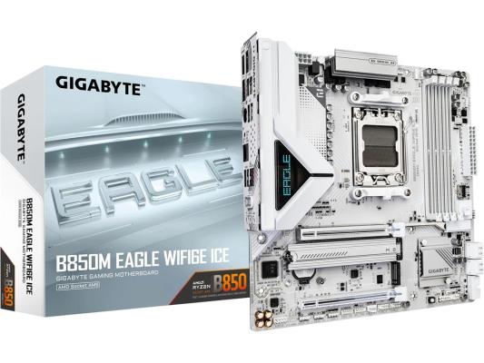 Материнская плата Gigabyte B850M EAGLE WF6E ICE Socket AM5 AMD B850 4xDDR5 mATX AC`97 8ch(7.1) 2.5Gg RAID+HDMI+DP