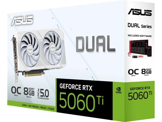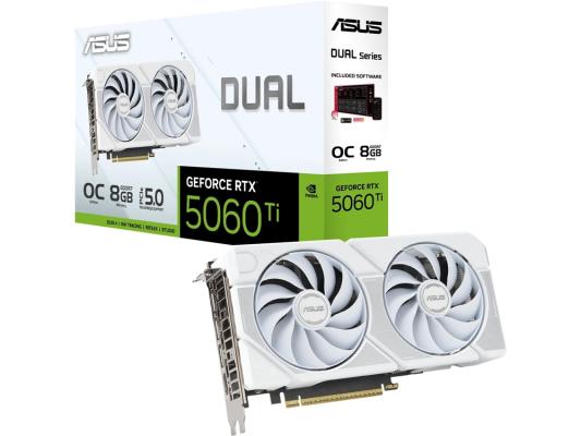 Видеокарта Asus PCI-E 5.0 DUAL-RTX5060TI-O8G-WHITE NVIDIA GeForce RTX 5060TI 8Gb 128bit GDDR7 2602/28000 HDMIx1 DPx3 HDCP Ret