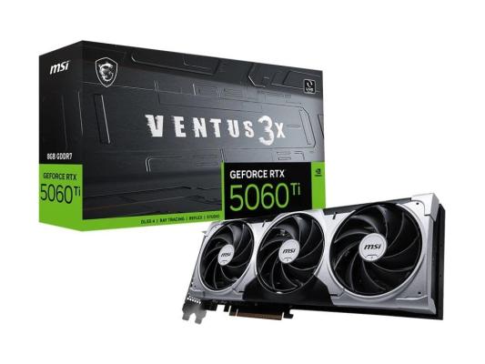 Видеокарта MSI PCI-E 5.0 RTX 5060 TI 8G VENTUS 3X NVIDIA GeForce RTX 5060TI 8Gb 128bit GDDR7 2572/28000 HDMIx1 DPx3 HDCP Ret