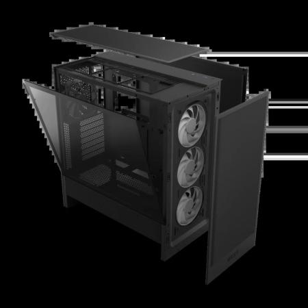 Корпус без блока питания/ Case NZXT H5 Flow RGB, Midi-Tower, TG, 3x120mm RGB + 1x120mm, 1xUSB-A 3.2 + 1xUSB-C 3.2, E-ATX, ATX, mATX, mITX Black