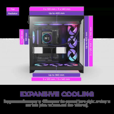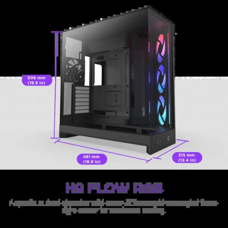 Корпус без блока питания/ Case NZXT H9 Flow RGB (2025), Midi-Tower, TG, 3x140mm RGB + 1x120mm, 2xUSB-A 3.2 + 1xUSB-C 3.2, E-ATX, ATX, mATX, mITX Black