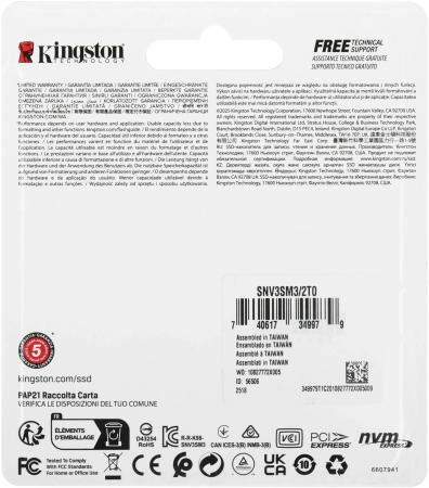 Твердотельный диск 2TB Kingston NV3 Series M.2 2230 ,PCI-E 4x [ R/W - 6000/5000 MB/s]