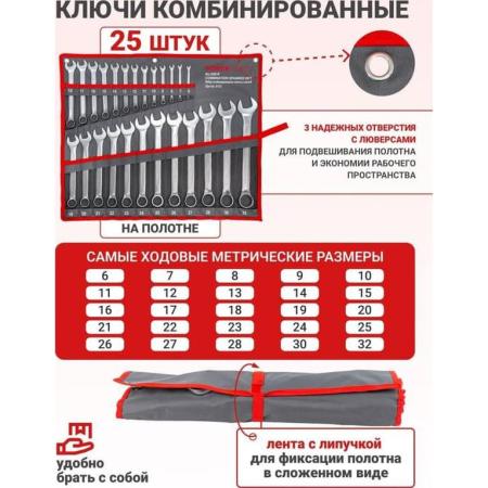 Forcekraft Набор ключей комбинированных 25 предметов на полотне FK-5261P(29935)