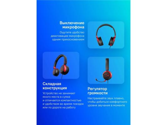 Наушники с микрофоном HyperX Cloud Mini черный/красный накладные оголовье (7G8F4AA)