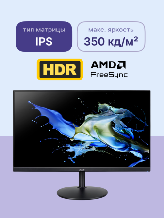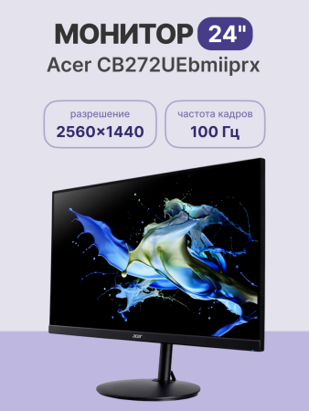 Монитор/ ACER CB272UEbmiiprx 27'', ZeroFrame Yes, Black, 16:9, IPS, 2560x1440, 1 / 4ms, 350cd, 100Hz, 1xHDMI(2.0) + 1xDP(1.2) + Audio out, Speakers 2Wx2, sync: DP/HDMI FreeSync, hdr: HDR 10, hadj 165, Pivot, DE: Delta E<1